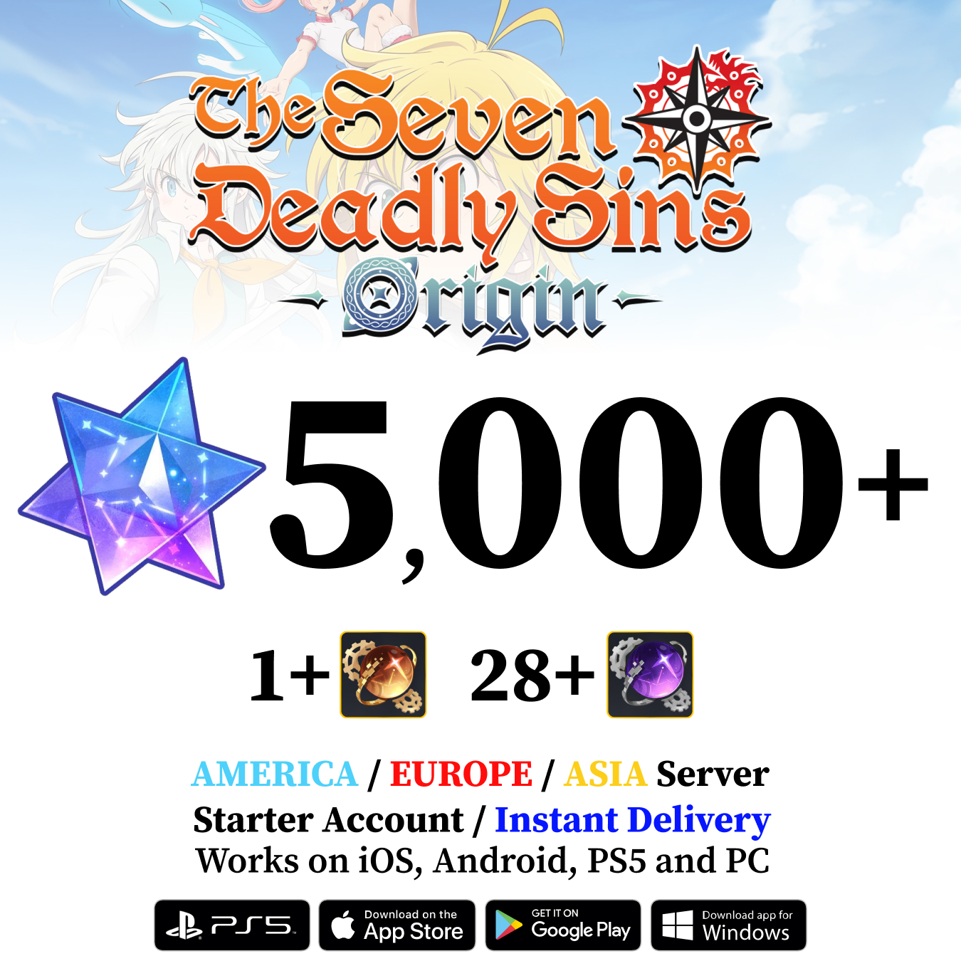 - This listing is for a The Seven Deadly Sins: Origin Starter Account with:
