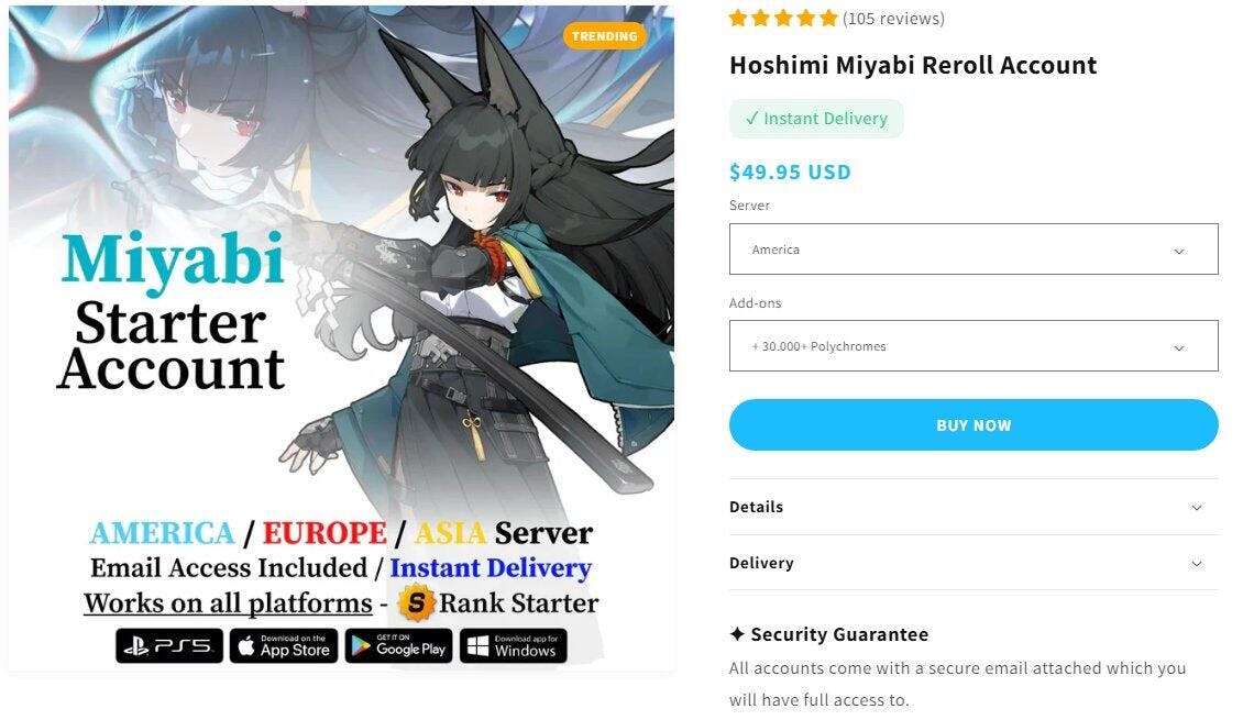 - This listing is for a Zenless Zone Zero reroll account with Miyabi on the selected server with resources as specified in the dropdown menu on this product page.
