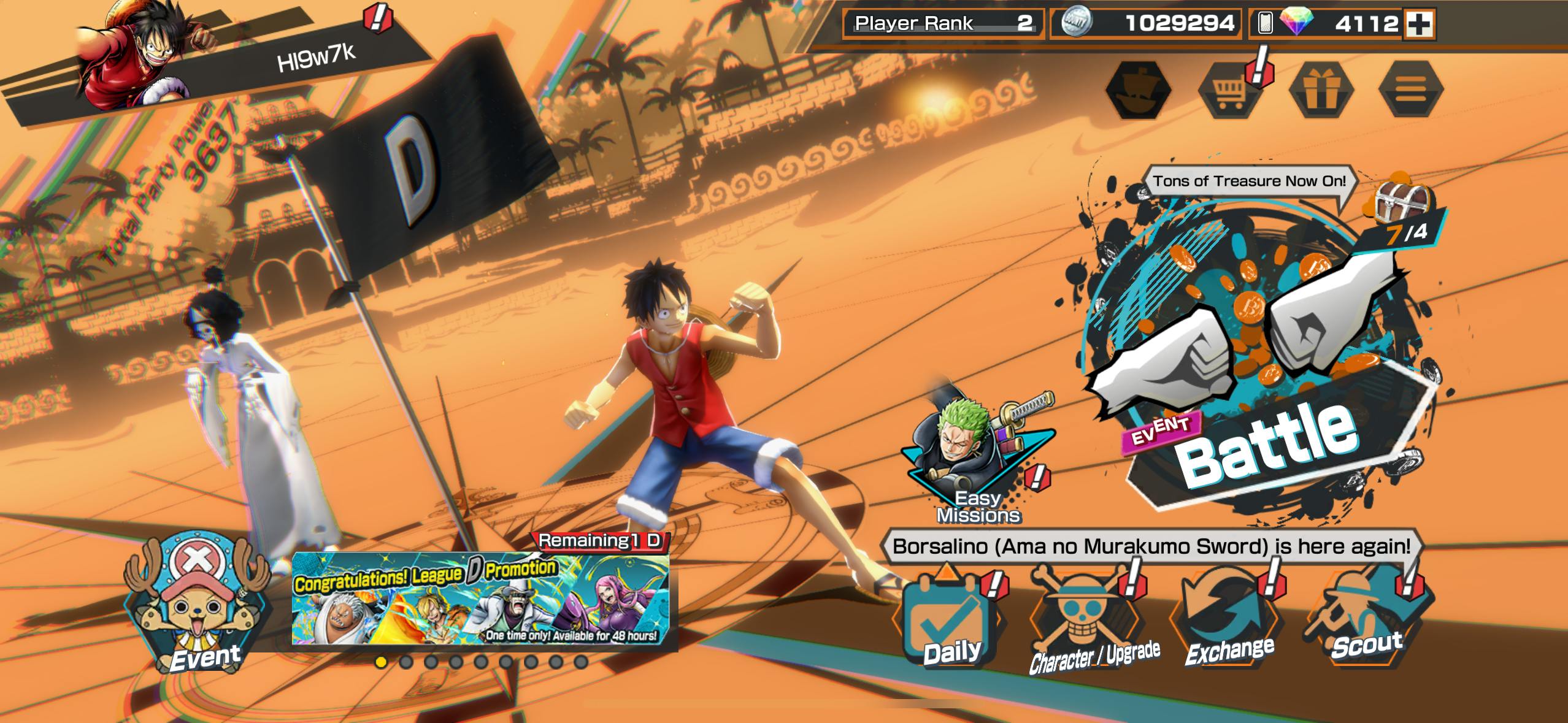 - This listing is for a ONE PIECE Bounty Rush starter account on the Japan server with: