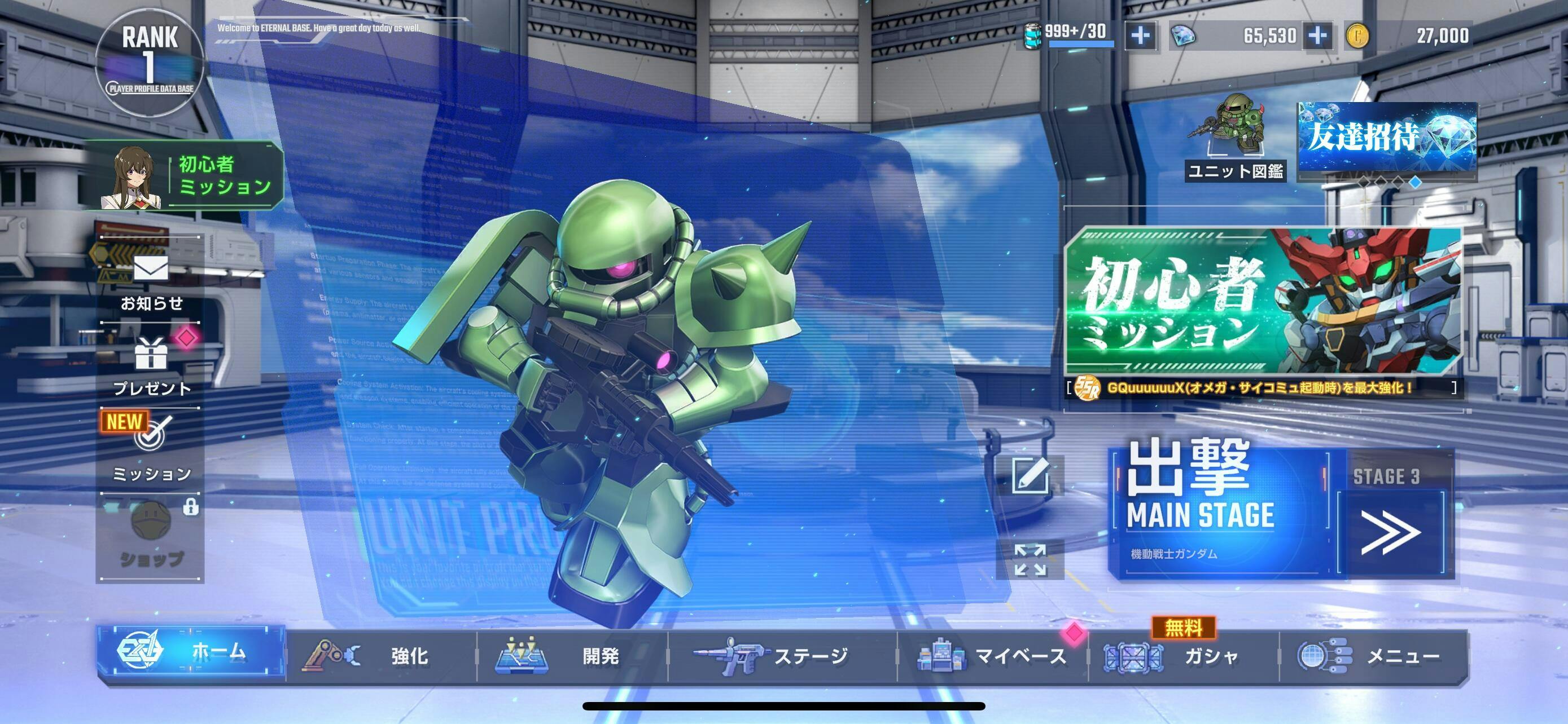 This is an SD Gundam G Generation ETERNAL reroll starter account on the Japan server with